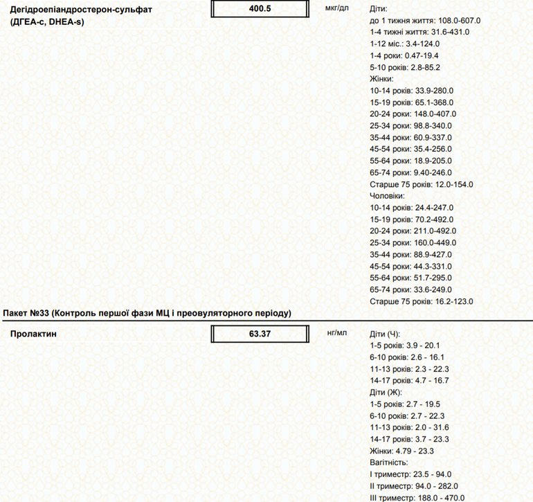 АнализыДополняю пост: сегодня 7дц на узи - ЛЯ пуст, ПЯ несколько мелкий и 1 Ф 9мм (возможно дорастет и будет О) С гормонами ж*опа и еще досдала Тестостерон св.и Тестостерон об., еще рас сдала пролактин и то что дала эндокринолог 25-ОН D.. отправляют на МРТ гипофиза и надпочечников! есть подозрение что ноги завышенных андрогенов растут оттуда вместе с пролактином и антителами ЩЗ..
