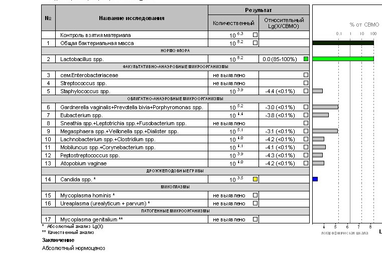 Так в заключении ведь написано - абсолютный нормоценоз. Значит норма. Значит все ок. Есть небольшое количество бактерий, но это не страшно, т.к. количество полезных лактобактерий лидирует.