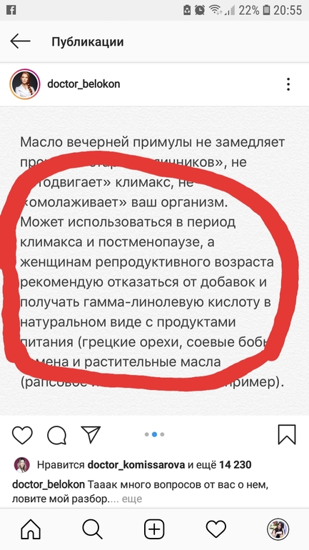 Медикаменты, витамины, травыДевочки, такой вопрос по поводу БАДа Масло вечерней примулы. Стоит ли его принимать? Гинеколог назначила в качестве "витаминки", для поддержки цикла. При чем сказала,что при беременности он безопасен на 100% и даже полезен. НО вчера под постом с графиком БТ и анализами, очень много девушек написали,что врач не правильно направляла на анализы, некорректно назначала лечение. И посоветовали почитать блог Гинеколога Ольги Белоконь, так вот ..ее пост о "Масле примулы " меня просто убил..Прикрепляю скрины.. Чему теперь верить.. сейчас на фоне задержки, я стала какой-то мнительной.Напишите,кто принимал, свои отзывы. Понимаю, что всё индивидуально, но очень интересно почитать мысли по поводу препарата. Дозировка была назначена 500, 2 раза в сутки. Фирма Now. Покупала на Iherb.