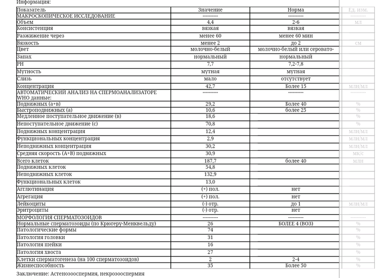 Девочки,всем привет. Не могу забеременеть 4месяца, отправила мужа на спермограмму.результат нас привел в шок..Заключение - некрозооспермия, Астенозооспермия..