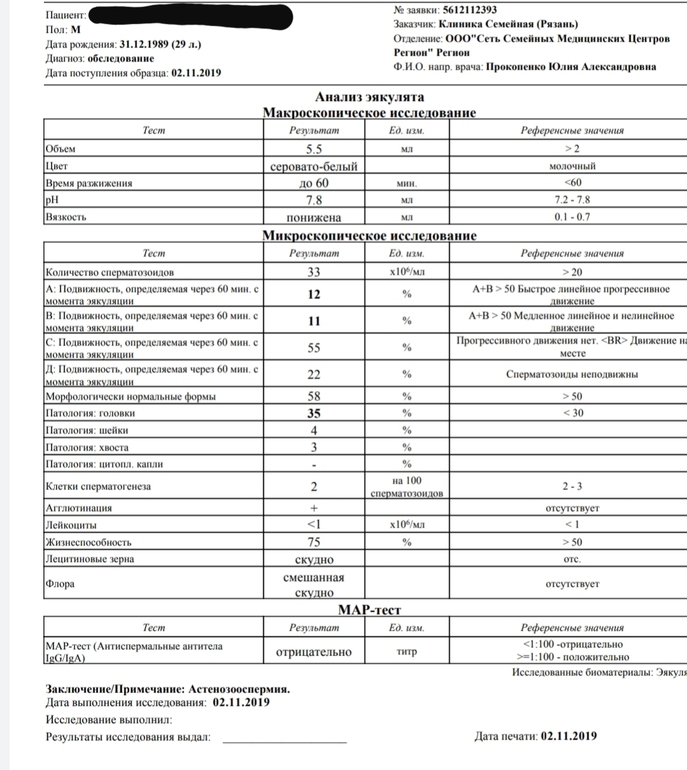 Ха. У моего спермограмма показала 3% морфологически правильных сперматозоидов. Самой спермы немного, патологий много и т.д. Собирались повышать качествои количество. Через неделю после спермограммы я уже смотрела на 2 полоски. Даже лечение не успели начать.