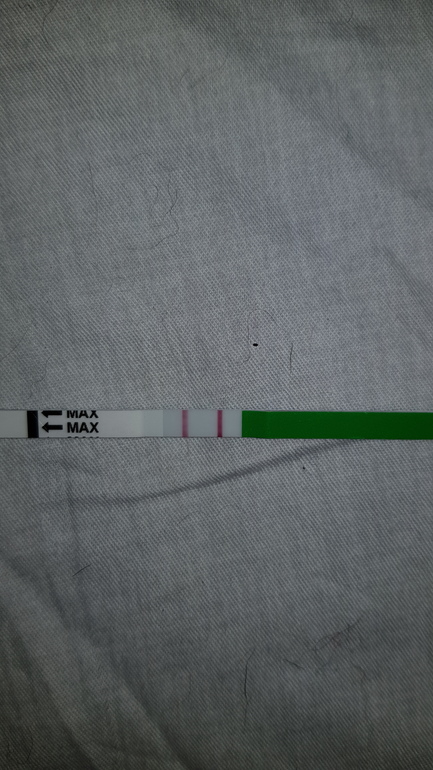 Лежали 2 теста на овуляцию. За день до М сделала его,т.к.на Б под рукой не было. Выдал уверенные //. На следующий день купила тесты на Б.подтвердили. но были чуть бледнее чем овуляционные.