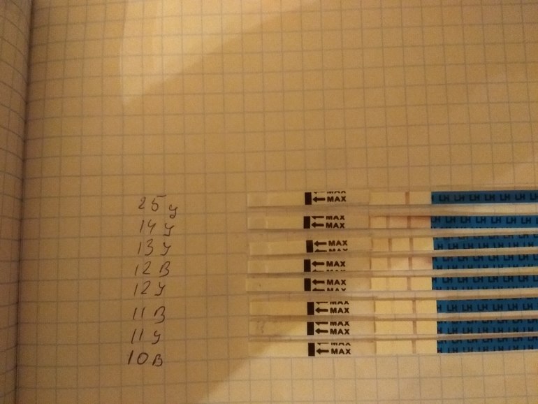 По поводу полоски на тесте овуляции .то полоска может быть хоть весь цикл , тут фишка в том чтобы 1 день тест был супер положительным