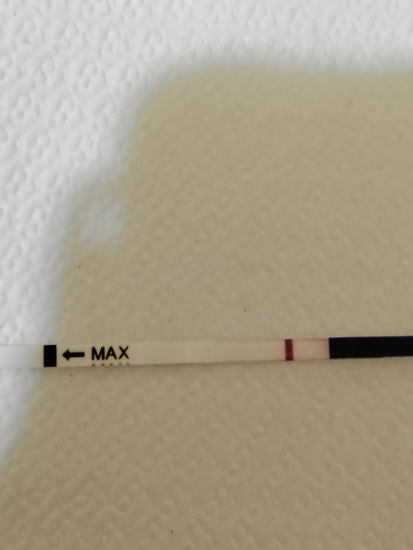 У меня точно такие же полоски были на нем, даже ярчали,другие тесты были чистые, пришли мес, прочтите мой пост ниже. Проверьте на эви