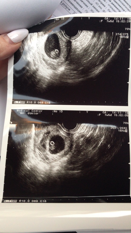 Спасибо!🙂 первое было в 5,3 недели. Плодное яйцо было одно. Это узи в 7,5 недель, пошла сердечко послушать, а дали послушать два❤️❤️