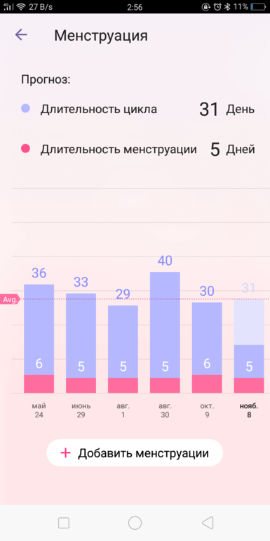 Это цикл за последние пол года, а вообще за 20 циклов - у меня выходит такая картина, правда не таком идеальном порядке как Я напишу Я просто просуммирую 28 дц - за этот промежуток был 4 раза, 27 дц - 2 раза, , 23 дц - 1 р, 24 дц -1 р, 29-33 дц - 5 раз, и больше 33 - 6 раз, поэтому Я ставлю в идеал цикл 28 дней, календарь выставляет среднее число цикла из всей статистики, если без задержек часто показывает кд верно, часто показывает что должны были быть а из нет, но задержки больше 7-10 дней, для меня частое явление
