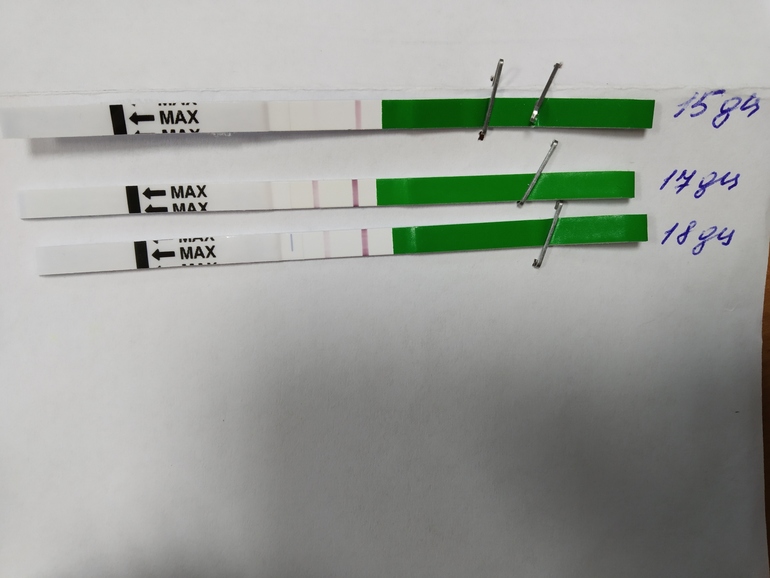 Овуляция( тесты на овуляцию)Я впервые отслеживаю О. Это могла быть она? Просто читала что яркую полосу не всегда можно поймать, она может быть всего пару часов. 15дц - тест днем, 17,18 - вечером делала.