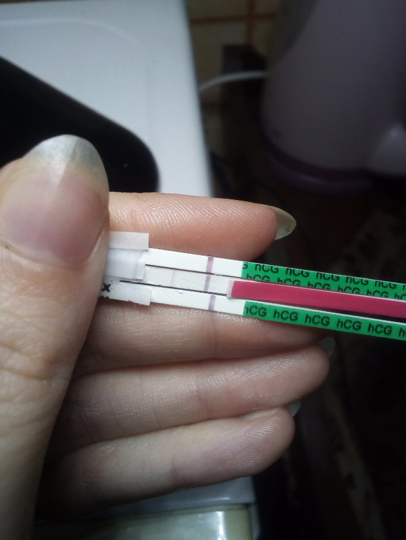 Вот фото тестов, 9ДПО на овуляцию тоже попробовала, тот что розовый)) Даже намека на призрак беременный нет. Судя по моему опыту - если на 9-10 ДПО чисто - то пролет