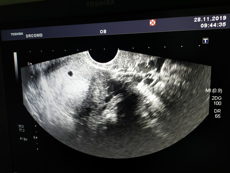 ПЯ в матке, 5мм, желточный мешочек 1 мм. Контроль через неделю