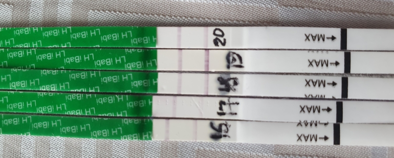 Овуляция( тесты на овуляцию)Снова про тесты на О. Сори, кого уже достала🙈 не ярчает ничего. Просто одинаковые тесты. Как бывает у вас? Сначала одинаковые и вдруг резко 2 жирные или постепенно в динамике?
