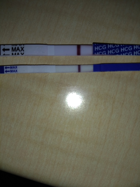 На нижнем ничего не вижу. На верхнем вижу тень, но это ж фрау🤷 Они почти всем тень показывают. Подождите день-два и сделайте тест другой фирмы.
