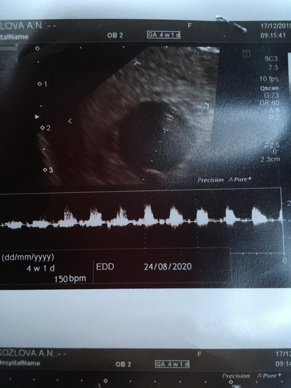 Малыш уже 9,6 мм! Хорошо так подрос и по ктр поставили срок 7,2 недели. ПЯ 17 мм. Киста ЖТ ушла. 😊 ЧСС 150 ударов.