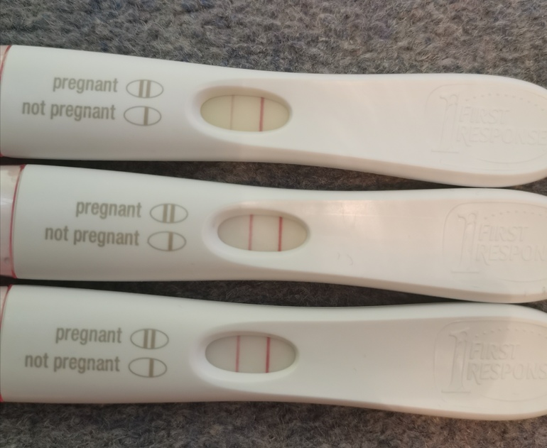 это мои тестики позавчера, вчера и сегодня. Вчера был поярче, чем сегодня🙄. последние М 21 ноября. Цикл в среднем 24 дня. Электронный с пятницы 1-2 недели выдаёт - без изменений. Грудь почти перестала болеть. Совсем немного при прикосновении. Что то грустенько. Хгч сдать не могу, сразу скажу.