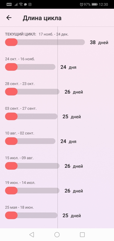 Прикрепляю скрин Эл. Календаря моих циклов.