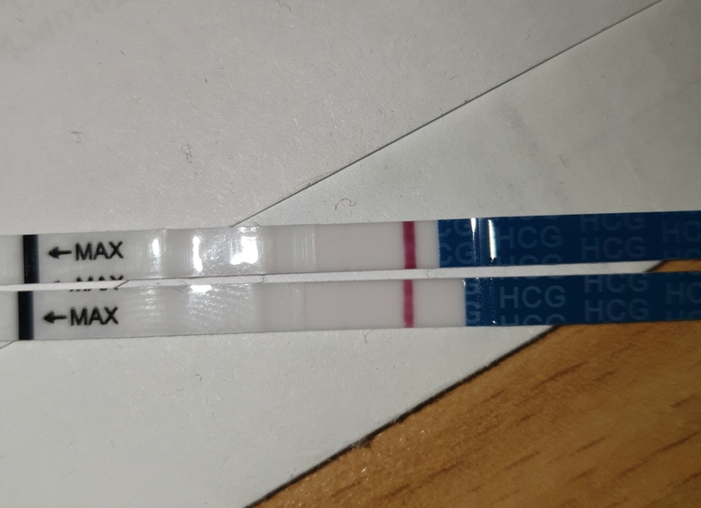 Яичники тянуло с самой овуляции, а вот вчера утром и днём кололо где то в матке. Днем тест был чист как слеза а ночью появилась слабая прозрачная полоска, сегодня днем уже вот такие)))