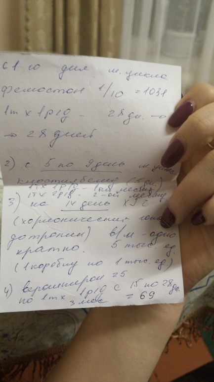 вот эта схема мне на два цикла для беременности. На УЗИ контроль с 14 по 16дц