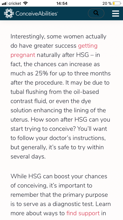 После чего я перечитала несколько англоязычных сайтов и форумов, везде пишут, что беременеть можно после ГСГ и даже шансы на успех увеличиваются на 25%