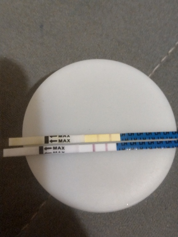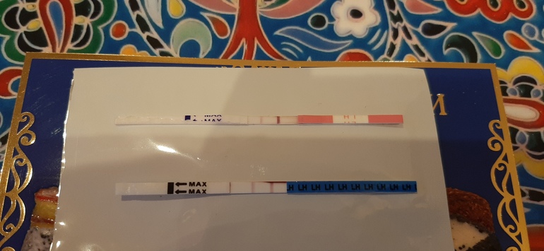 Овуляция( тесты на овуляцию)Девочки, всем привет!! На Ваш суд тесты: розовый - китайский, синий - я родился. Что думаете?