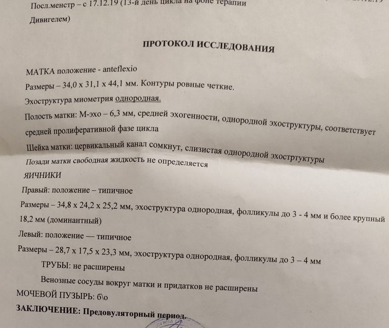 Жидкость в позадиматочном пространстве за 2 дня до месячных.