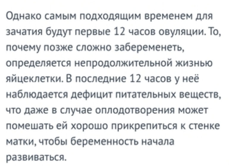 Планирование второй и последующей БМне доктор сказал 12 часов живет яйцеклетка, в гугле написано 24. Что вам говорили ваши врачи? Чувствую овуляция началась вчера вечером, боюсь что сегодня вечером уже поздно и без шансов.