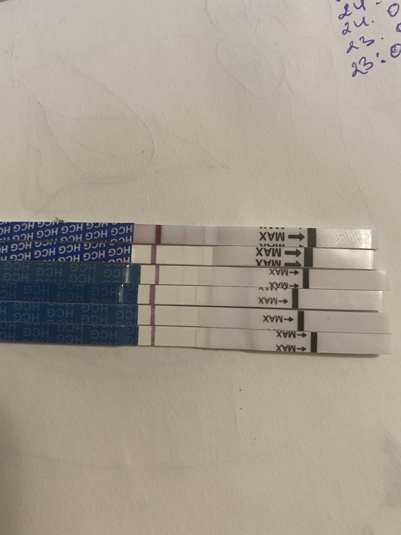 Ой, у меня такие же тесты! На 11 ДПО начала виднеться тень, вчера ярчало, сегодня немного ярче,чем ваш самый верхний.