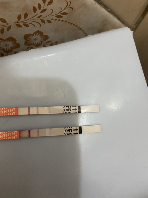Овуляция( тесты на овуляцию)Ловила О. В пн был тест с тестовой полосой супер яркой. Болел ля, тянуло, ныло все. Вчера вечером и сегодня утром тесты такие👇🏻