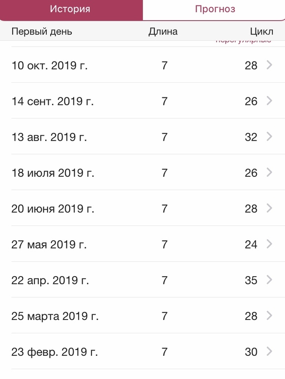 Месячный циклДевочки посмотрите пожалуйста, фото ниже . Получается у меня цикл нерегулярный? В чем может быть причина?