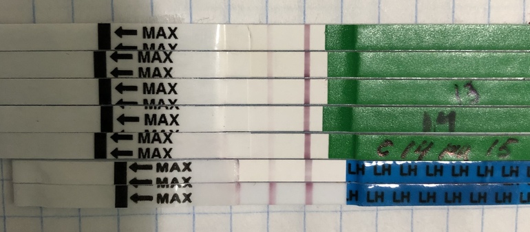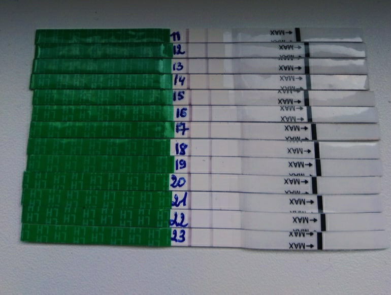 Просто мне кажется, что 13 вечером полоска красная, а в остальные дни они серые, вот и подумала, может есть девочки у которых так овуляцию тесты показывали 😁.