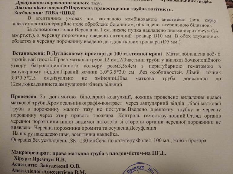 Вб справа, лапароскопия, трубу удалили полностью. Во время операции проверили вторую трубу- контраст не прошел. И они ничего не сделали.