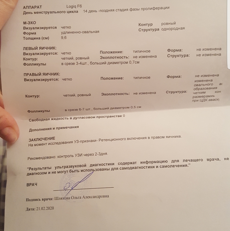 Вопрос: кто разбирается в фото узи, на что это похоже? Фолликул, желтое тело или киста? Жидкости нет. Я врачу не доверяю, она явно была ни в чем не уверенна, да еще и достала свои тетради с записями подеркнутыми салатовым маркером. Как в институте.. И выставила меня из кабинета, чтобы я ждала заключения. Вот собственно оно.