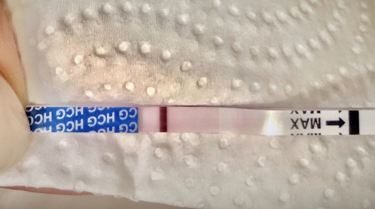 Я думаю, розовое - это растекшийся реагент. А полосочка в том месте, где должна быть - как раз белая(