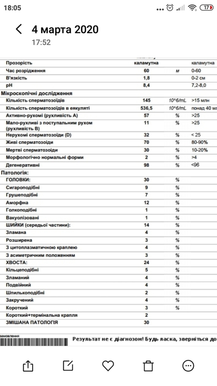 Как я понимаю у нас 145 млн при норме свыше 15 млн.но меня больше смущает морфология,норм спермиков 2%,а должно быть свыше 4%.хотя с таким количеством, может этого достаточно.на днях пойдет опять к врачу с этими результатами,посмотрим,что скажут.