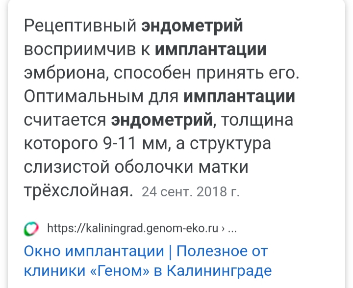 Ну смотрите, для имплантации эндометрий должен быть 7-12 мм. После овуляции оплодотворенный ооцит идет по трубе 4 дня. На 5 день попадает в матку и на 6-8 день совершает имплантацию.