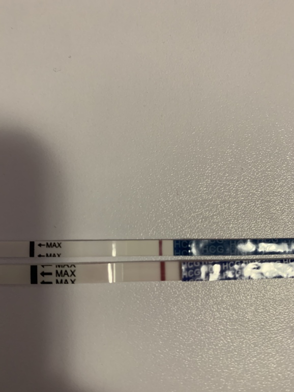 На обоих тестах полоски бледные,но хорошо видны.Не верю в такие совпадения,что сразу два теста,да ещё разных фирм среагентят.Нет.Это ваш малыш,вам машет "привет"!Так,что покой,фрукты и настраиваемся на бессонные ночи)))(никого не поздравляю рано-суеверная).Лёгкой беременности и счастья в семье!