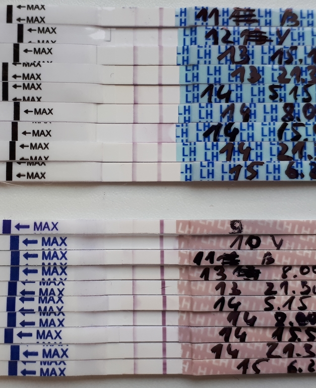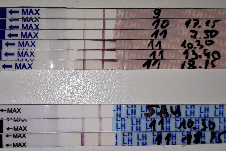 Стараемся))) правда сегодня утром не получилось, дочка раньше будильника пришла к нам)) но надеюсь вечером не поздно еще будет. В 5 утра тест супер яркий еще. Не совсем на спад пошел пик ЛГ