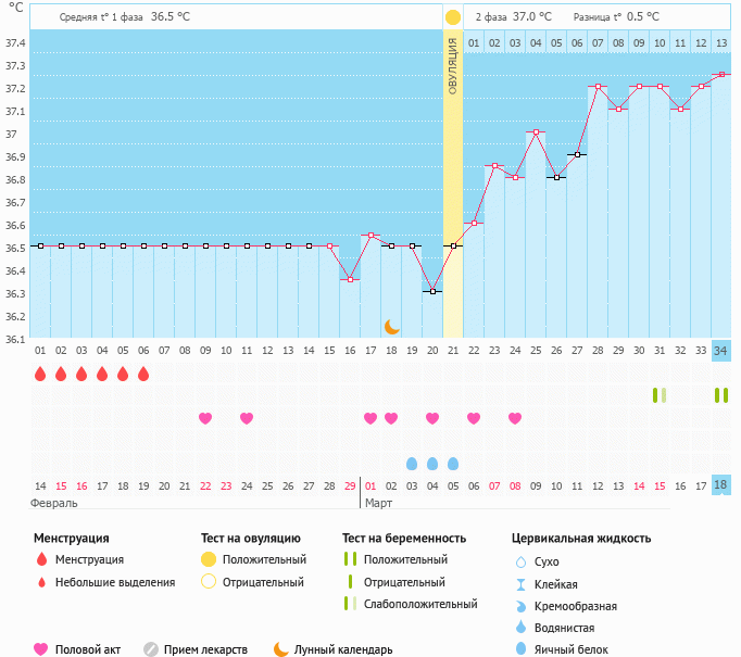 Базальная температура, ТТ, графики БТ10 дпо хгч - 36,