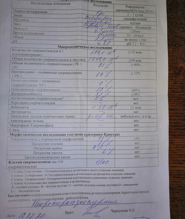 По результатам у вас вроде все в норме, морфология шикарная 33%, подвижность, вязкость.