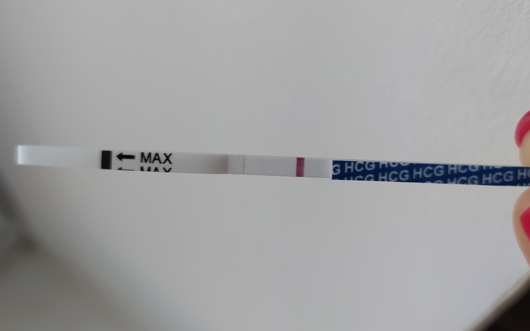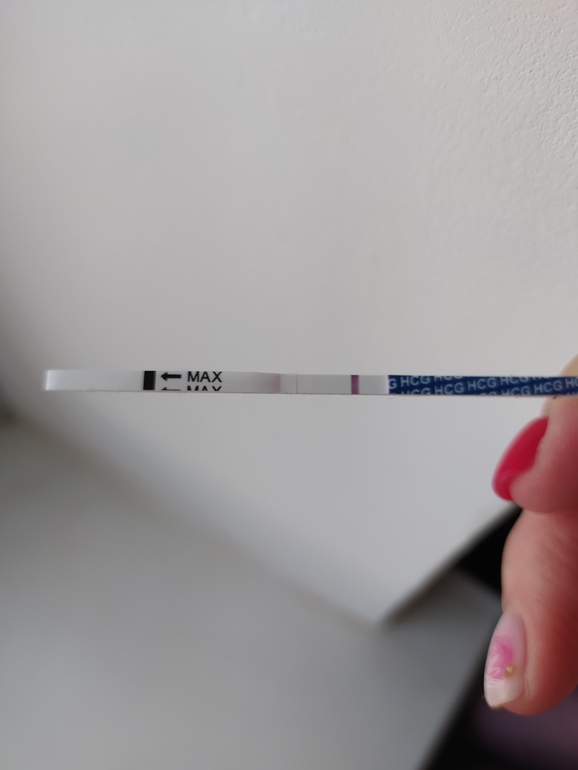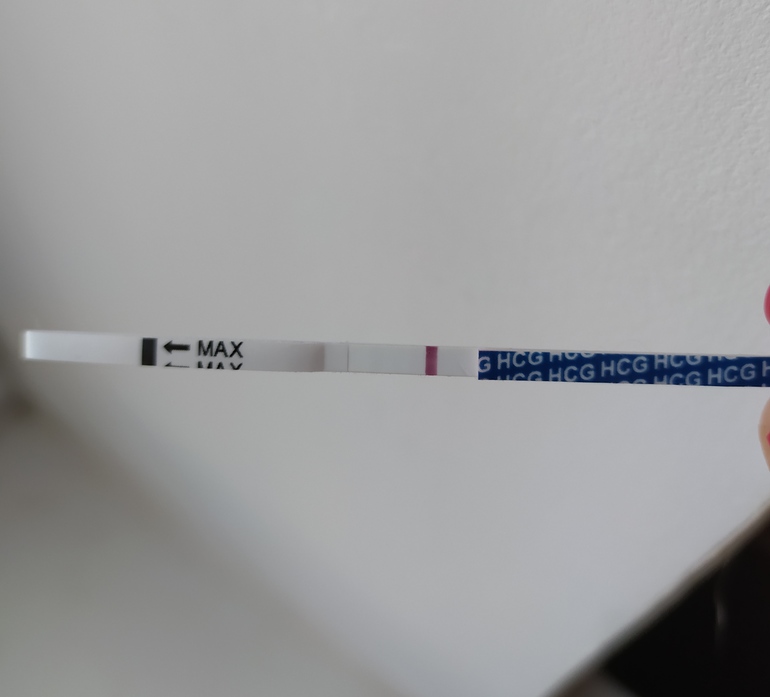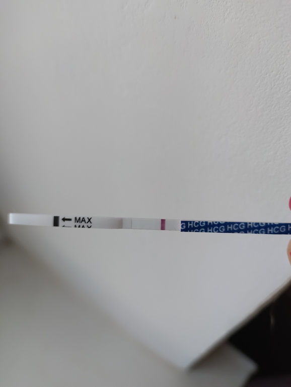 Если это фрау, то полоска должна быть ближе к контрольной и это растёкся реагент, а сама полоска белая. Но это если фрау) я просто их тонну уже сделала