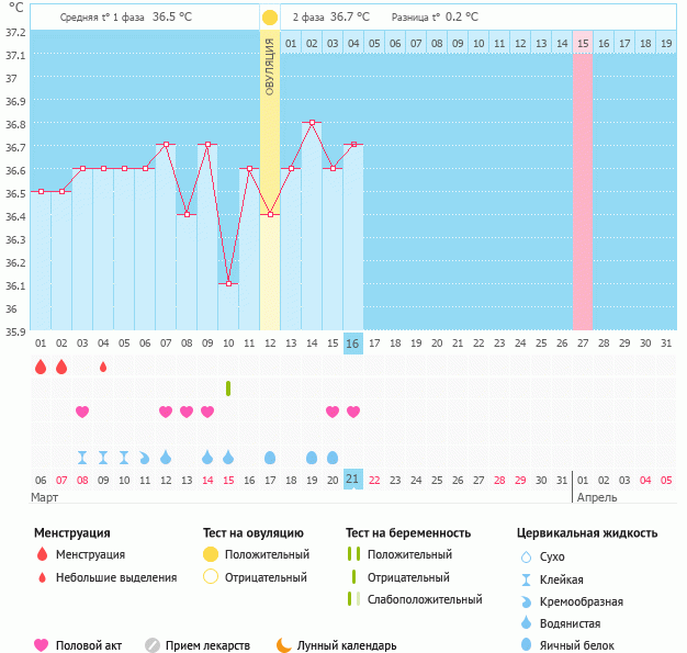 Месячный циклДД! В двух словах. Цикл 28-30 д. О всегда (+_1) по середине. И вот мало того, что в этом цикле всего 2 дня из 7 были М, так еще и О была на 11(!!!) день -(на УЗИ пошла 17.03., а там ЖТ!)определили. Никогда так рано не было О, поэтому "старалась" с мужем не в те дни. Судите сами. (График БТ)