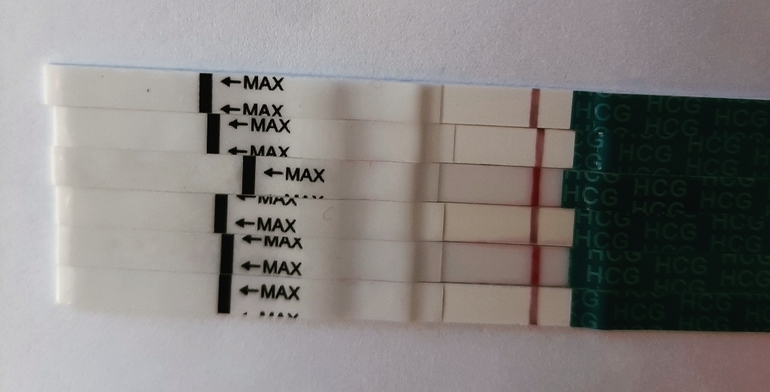 вот это мои. Нижний тест 11дпо.самы верхний 9дпо. И 2 по середине 10дпо. Нижний эвитест,