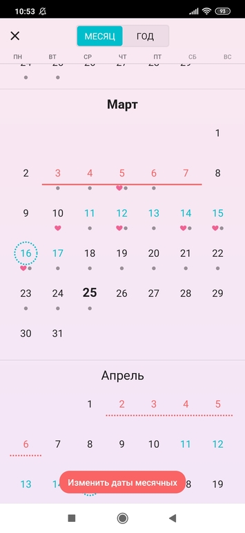 ну вот мой календарь, тест на О был положительный 15 числа, не знаю