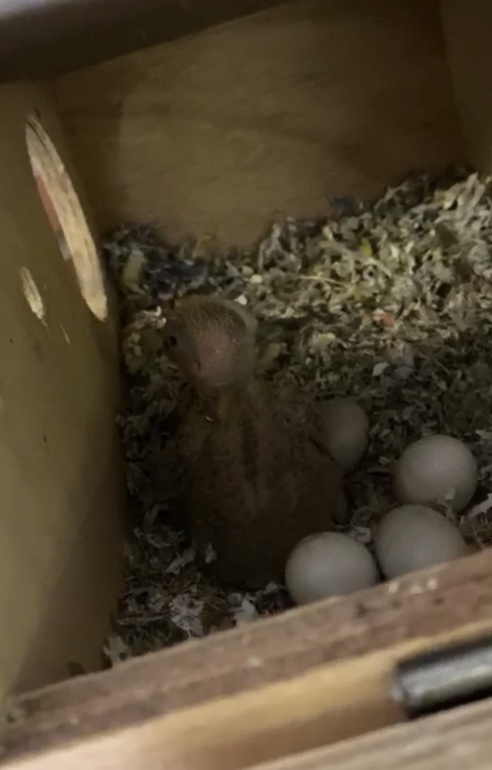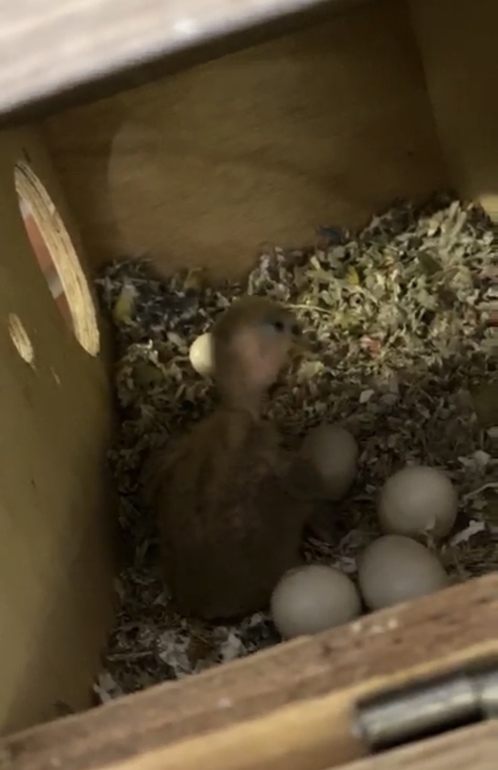 А вот у нас тут дома впервые за все время у love birds вылупился птенчик.