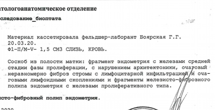 Гистология после гистероскопии.Удаляли два полипа, плюс брали соскоб со странного участка эндометрия. То есть как бы 3 штуки.