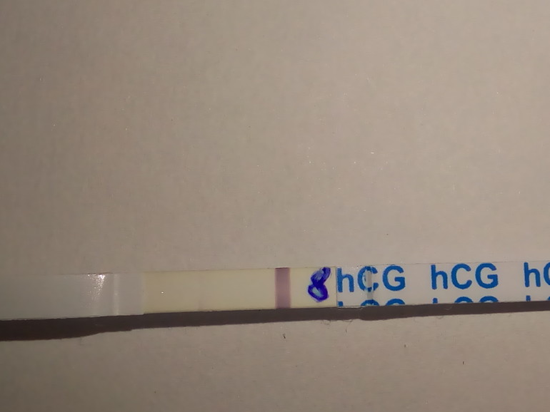 Делала home test- одна полоска. Делала babycheck показывает еле заметную вторую. Поэтому не знаю. Один день задержки .