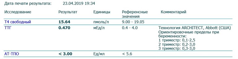 Посмотрела динамику Т4 и ТТГ - анализы за апрель и за декабрь. Примерно до июля пила полгода ЭУТИРОКС прописанный репродуктологом. Она сказала пить без остановки чуть не до рождения ребенка. Пропила до июля, в апреле ТТГ был низкий, думаю от него. Потом пить перестала. К декабрю он немного вырос снова, хотя и в рамках нормы, но Г посоветовала вернуть эутирокс в меньшей дозировке и не бросать. Пью сейчас.
