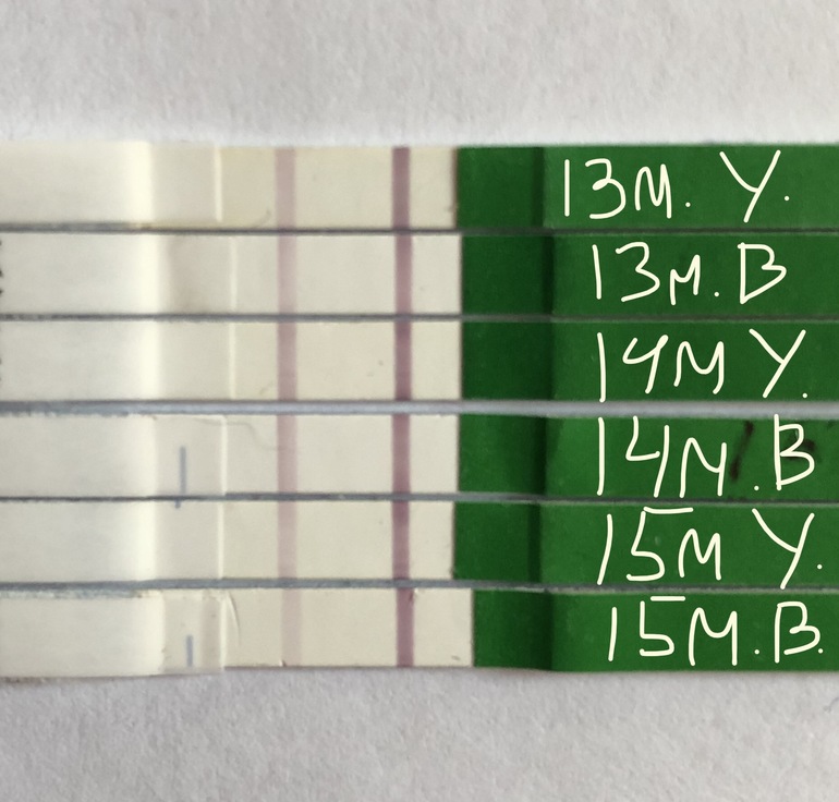 Планируем 4 месяца, первые 3 месяца пользовалась тестами «Я родился», заявлены как высокочувствительные, но бледные жутко, но два месяца полоски сравнялись. За БТ не следила ни разу в жизни, в феврале и на этом вторая не дотягивала, я подумала просто ложный скачок, сходила на УЗИ - все нормально. Но я психанула и на следующий купила хваленый овуплан и решила график БТ строить, ну собсна вот результат... снова купила дешевые «Я родился», видно мой пик от природы маленький ))))) лично мне больше подходит тест Клевер, но овуплан ярче. Короче тесты эти информативны относительно