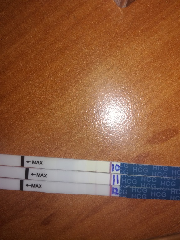 У меня три дня тесты не ярчали , еле видны были с 10 дпо и только мне , на 11 уже муж увидел , и так долго держались до 14 дпо.