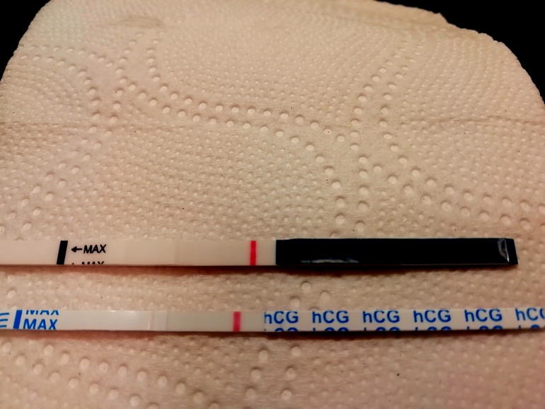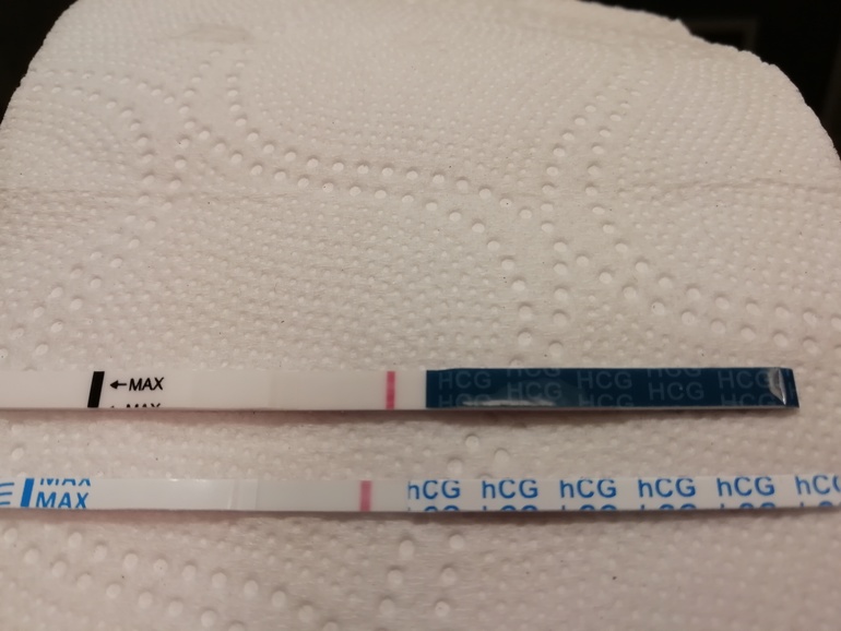 У меня была стимуляция, укол ХГЧ 10000, сдавала анализ на 9 ДПУ, ХГЧ был 3,68, вот фото тестов, полоска была, это одно и то же фото, просто с обработкой.