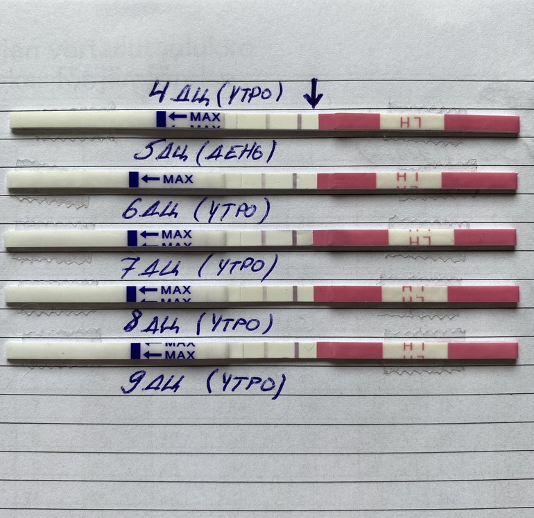 С самого начала цикла уже на протяжении недели полоски на тестах не меняются. Одинаковой яркости.