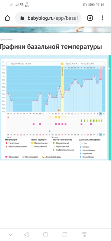 Вот вроде надо радоваться, а мне грустно. Динамики в тестах особой я не вижу. График, ну вроде, не плохой. Поеду, сдам кровь на ХГЧ и прогик. Официально буду считать себя беременной когда по крови увижу хорошую динамику.
